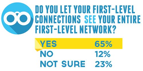 D'après mes dernières lectures (voir image ci-dessus), 65% des inscrits à LinkedIn laissent leurs réseaux ouverts. 23% ne sont pas sûrs. Comme c'est un réglage à faire sur son compte LinkedIn, je pense qu'on peut considérer que ces 23% ont eux aussi leurs réseaux ouverts.