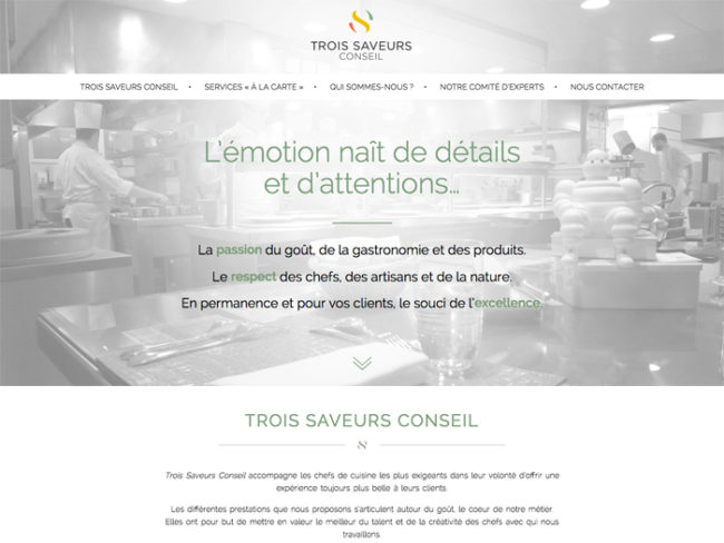 Nous avons été contactés par 3 Saveurs pour implémenter le design complexe (parce que totalement paralaxe et responsive) de leur site, suite aux problèmes qu’ils avaient rencontrés avec leur agence initiale. Nous avons implémenté leur design en responsive / paralaxe sous WordPress.
