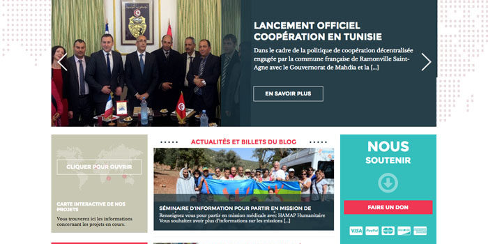 Hamap Humanitaire nous a contacté afin de concevoir une nouvelle identité visuelle pour leur Association, puis exporter et intégrer ensuite l’ensemble de leurs nombreux projets et billets déjà existant sur leur site précedent (qui avait été développé sous SPIP) – le tout en moins de 2 mois.